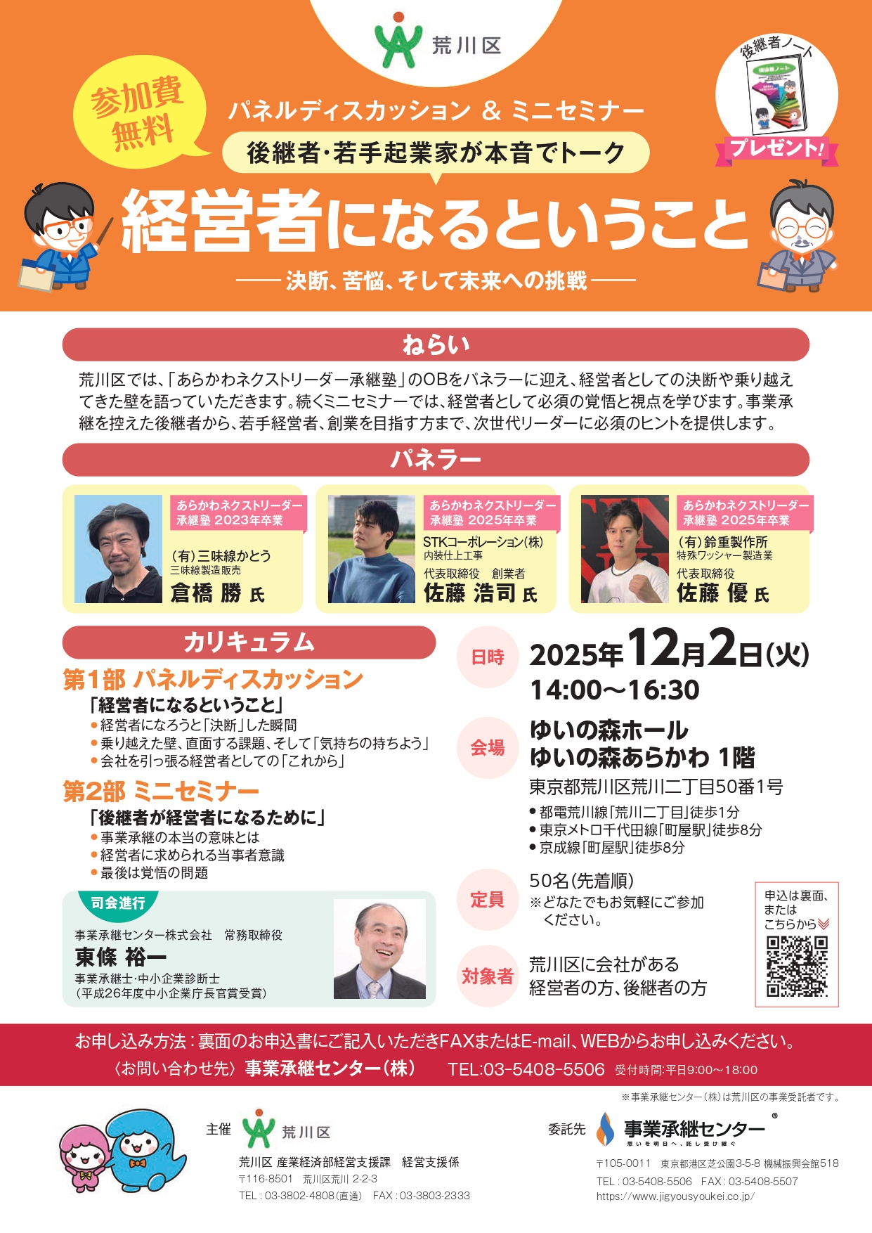 対象者:経営者、後継者、金融機関 等(区外企業も参加できます)